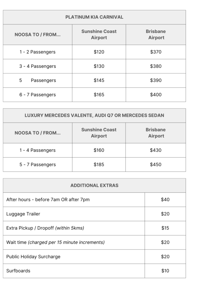 Additional luggage or oversized items (e.g prams, golf clubs, surfboards or wheelchairs) may need to be accommodated in a larger vehicle or a luggage trailer may be required.